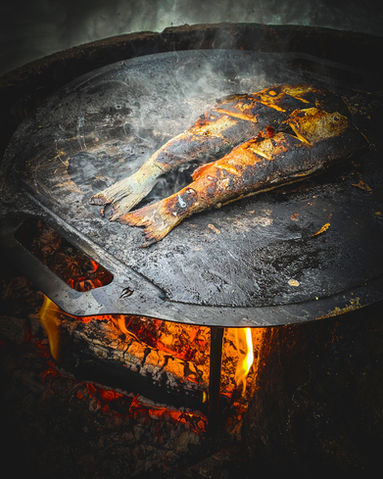 Gästhusets utekök är uppskattat av våra gäster sommar som vinter. Här kan man laga sin mat över öppen eld och koka frukostkaffet i kaffepanna. Matplatsen har ett tak och en eldstad i mitten. Sittbänkar och stolar med renskinn finns att sitta på. Grillredskap, muurrika, grillgaller, kåsor mm finns att tillgå.